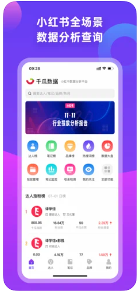 "千瓜数据"主要提供全网优质小红书达人查询等数据效劳,并提供多维度的小红书达人榜单排名、达人引荐等适用功用,是一款小红书运营及广告投放效果监控的专业工具。