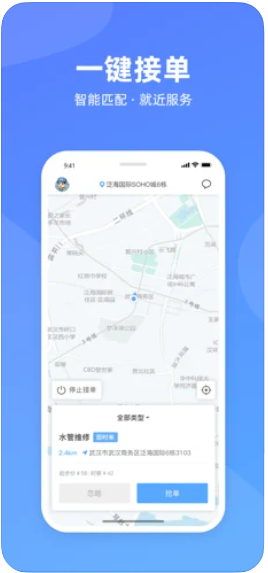 师傅在该模块一键接单无需等待,节约时间,提高效率,服务回报有保障,多接多赚。无中间商赚差价,服务有凭证,线上交易有保障。