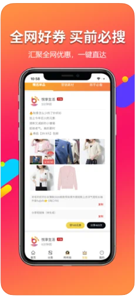 悦享生活苹果版全网知名电商、大牌海量优惠券随时领,一键领券,自用省钱,分享赚钱,悦享生活app一年帮你省好几千,数千万达人公认的省钱利器。感兴趣的朋友嗯快来进行悦享生活app下载使用吧。