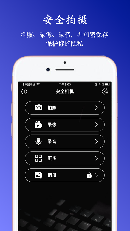 1、拍照、录像后,可直接存储在App中,并为相册设置密码,保护自己的隐私;