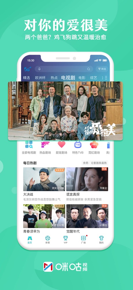 看5G奥运会,上咪咕视频,全场次、高清体育直播!家庭喜剧《对你的爱很美》张嘉益替沙溢养娃二十年?亲爹养父上演夺女大作战!《陡崖之上》张艺谋高口碑新作,危机一触即发,用信仰点亮拂晓