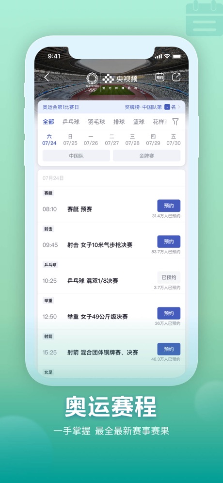 3、新增奥运赛事赛程,精彩比赛一键预约;