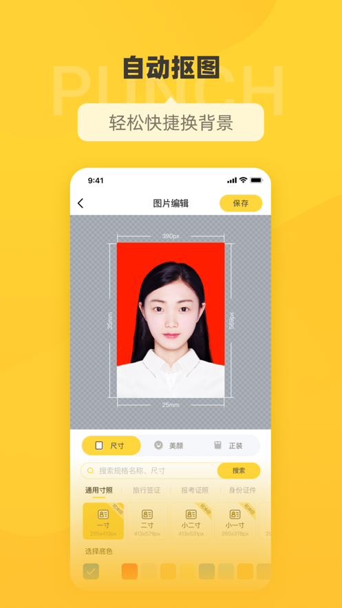 电子证件照制作是一款非常智能的照片制作软件,用户可以在平台上查看到很多的证件照尺寸,直接选择自己所需要的尺寸就能够开始证件照的制作,软件内所拥有的抠图和背景替换功能可以帮助用户制作出十分专业的证件照,电子证件照免费软件下载后还有美颜功能,让用户能够制作出最美丽的证件照进行使用。