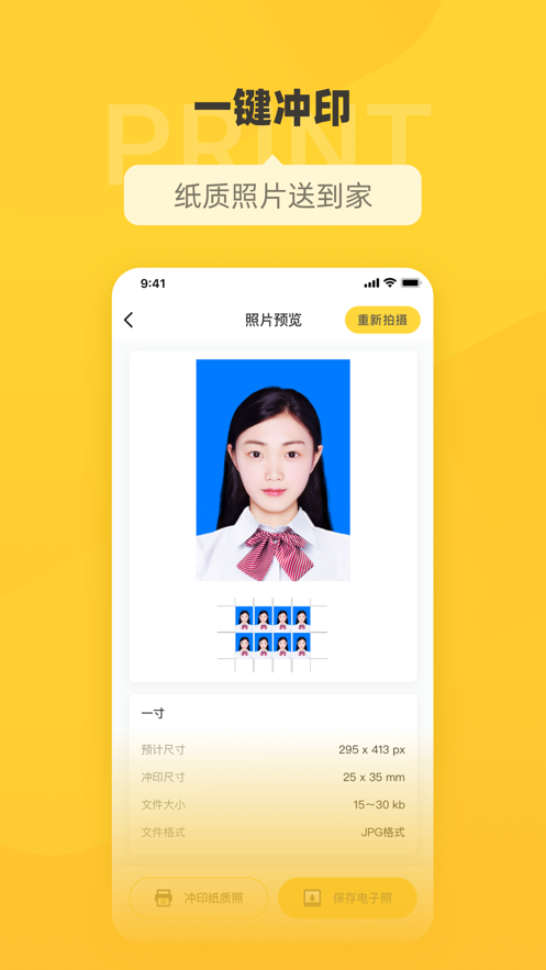 3、用手机随时随地就能制作出证件照,可以直接保存到手机内也可以一键冲印。
