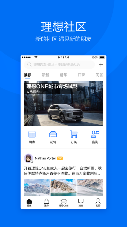 社区:理想车友发布最新车辆体验信息,官方工作人员发布最新车辆资讯,车友问答互动,参与社区活动与话题,加关注即可理解好友的最新动态。