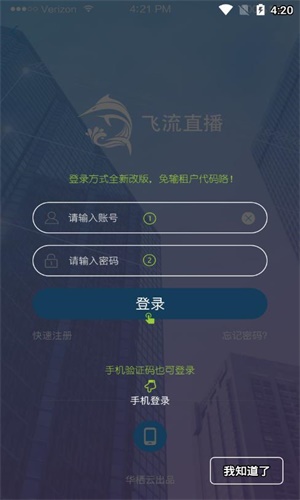 1、在一般帐号登录密码外,增加了飞流指纹登录,用户可使用此功能快速登录;