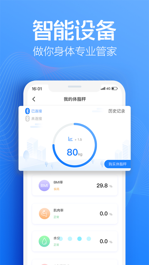 2、不仅有快捷实用的工具,还有体脂秤、智能手环等智能设备为用户记录各项数值;