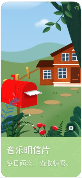 1、红色的邮箱中有一封从远方传来的明信片,领取你的信件,便可进入旖丽奇幻的音乐美景。