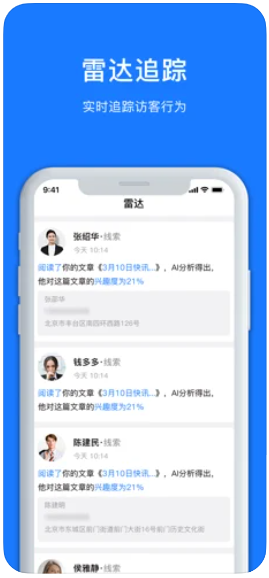 4、实时雷达追踪,犀点app帮助你发觉访客的行为,便捷。