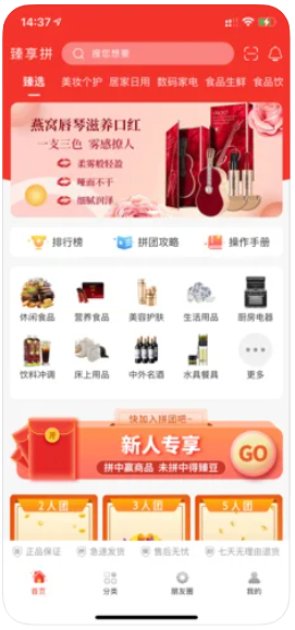 臻享拼app是一款好用的拼团购物软件,臻享拼app具有海量的购物资源,分类齐全,包含生活上的各种需求,用户在臻享拼app能够轻松购物,团购价钱更实惠。感兴趣的朋友们,快来进行臻享拼苹果版下载体验吧。