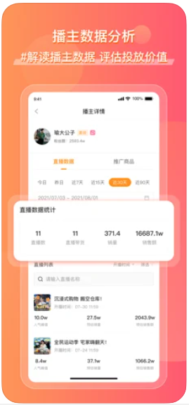 2、提供商品近90天关联播主、关联直播数据,让你快速定位优质带货播主