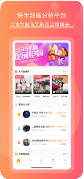 飞瓜数据官网版是一款专业的短视频直播电商数据剖析平台,为用户提供抢手快手达人、直播、商品和视频类等多维度数据效劳,实时监控快手中心数据,助力粉丝快速增长,直播电商变现和品牌营销。