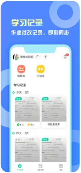 孩子的学习记载,如搜题、修改记载,即刻同步到App,学习状况了如指掌。