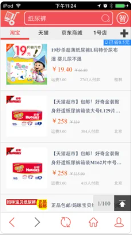 统一搜索是您在搜索某个商品或者某个大类商品的时候,不需要一个一个电商的输入关键词,输入一次,就能够了,小小的一步,但是时间上让您节省的不止一点点。