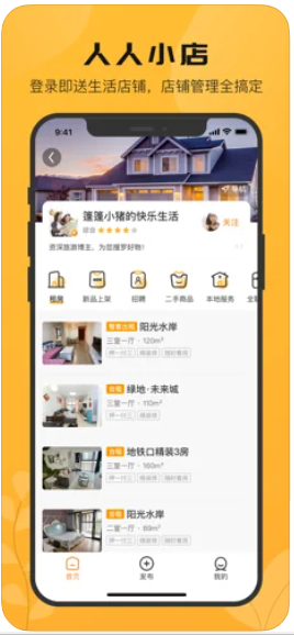 用户能够免费公布生活服务、商品等信息,拥有一家属于自我的社区小店。