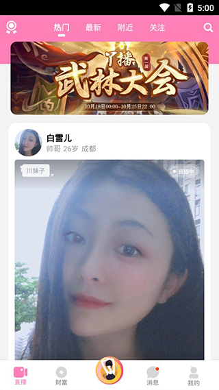 全屏直播,走出直播间,更真实的主播,更真实的观看!主播生活一目了然!
