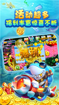 3、新增激光炮炮台,让各种鲨鱼、鲸鱼、大金龟、美人鱼、创新型的房间,超多高倍率金币等你来赢。