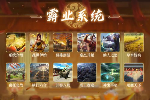 霸业系统功能入口在玩家创建角色之后即开启,系统永久存在,功能界面在成就界面里。开服开始会在右上角出现霸业系统的额外入口,在本服完成所有霸业目标后,该入口不再显示,只能在活动/成就入口进入。