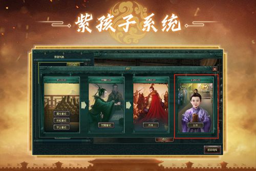 《卧龙吟》10周年特别版开放紫孩子,可以自由给孩子选择兵种技能和专武,各位主公一定要切记,不可以学习自己国家主公的专武,要选择其他国家的专武哦。孩子的专武和主公的专武只能享受一个,就看怎么搭配上阵,哪个在前先发动专武技能,就认定哪个哦,各位主公根据自己的需求去选择,更多的玩法,等你们去解锁哦!