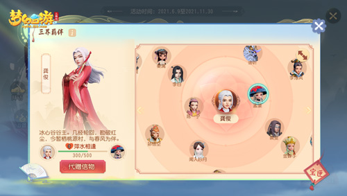 作为全新知交角色,龚俊在三界结交好友离不开各位少侠的帮忙!少侠们参与“灵犬闯天涯”玩法,即可将灵犬带回的各地特产赠送给“三界羁绊”中任意角色,为龚俊与对方增加好感度。值得注意的是,“三界羁绊”玩法中标明了角色喜爱的特产,少侠们对应着去赠送可额外增加好感度。而好感度与龚俊达到莫逆之交且为最高好感度的三界友人,还可在每日的陪伴日常中出现。更多好感度相关功能将逐步解锁,敬请期待哦~