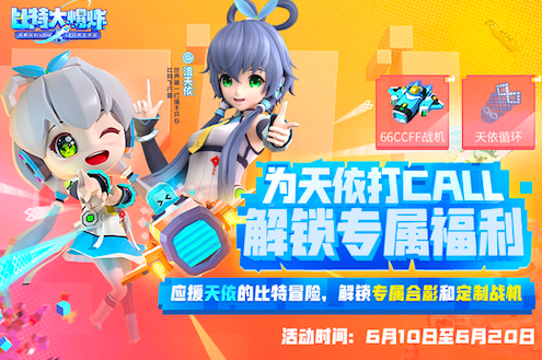 除了主题曲MV,为天依打CALL应援活动已同步上线!活动期间,下载《比特大爆炸》,即可加入天依的应援。完成指定任务:如游戏闯关、或邀请好友一起下载游戏加入应援,即可为天依打CALL,获取应援值!积累应援值,可兑换与天依的专属合影,更有天依蓝【66CCFF号】专属战机与【天依循环】专属弹道等你解锁,让天依陪伴你的比特宇宙探险旅程。玩家可前往“比特大爆炸手游”公众号,点击菜单栏【福利活动】- 【为天依打CALL】参与活动。