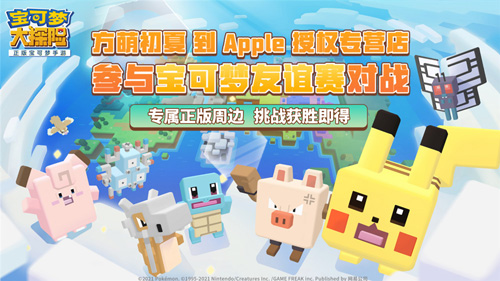 欢乐友谊赛,线下齐相聚!由网易、The Pokémon Company、GAME FREAK inc.合作开发的《宝可梦大探险》与 Apple授权专营店联动活动今日正式开启,遍布全国各地的2300余家Apple门店将变身友谊赛场地,等候探险家们前来欢快对决,赢取精美正版周边礼和丰厚游戏内礼包!