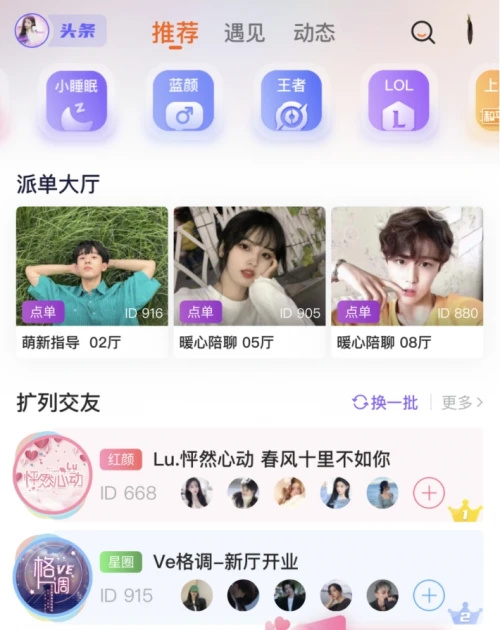 (Yami主界面洋溢着新生代的青春气息)Yami这种颇有怀旧感的连麦交流模式,给不同圈层的用户都能在第一时间构建身份认同的归属感,占据了细分板块,赢得了市场的肯定。