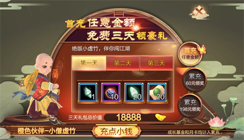 6月17日后,玩家光临新服,登录即可领取元宝、宝石、外观等,累计登录7天必得七阶宝鼎;玩家每日签到更可获得元宝、伙伴、美人等奖励,前七天玩家等级加速升级,提升等级更有对应豪华赠礼;新服新增排行榜,完成任务即可获得相应奖励;首充加赠6倍绑元,3次后加赠3倍绑元!