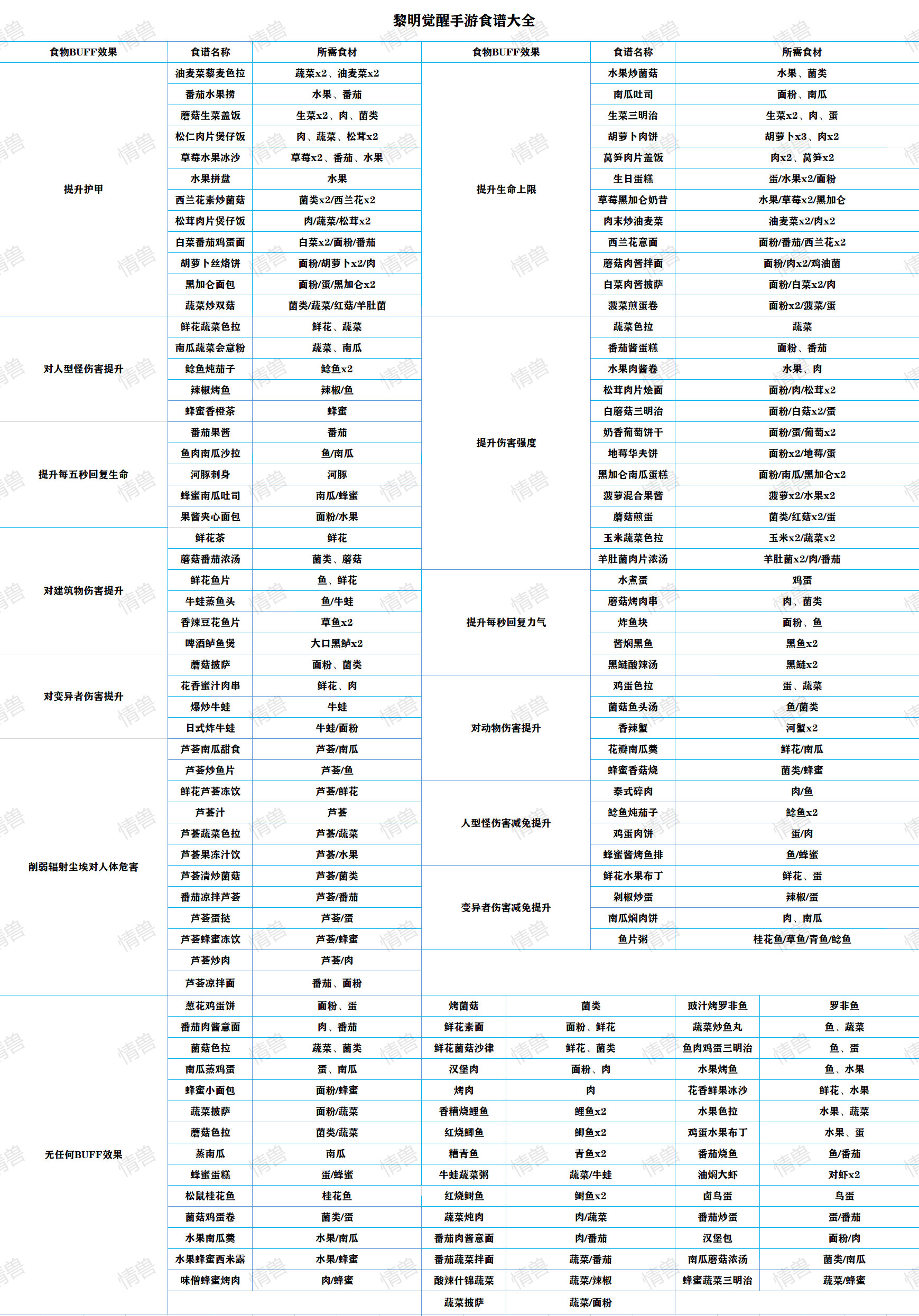 黎明觉醒食谱配方大全及食物buff效果介绍
