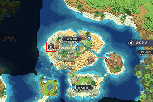 前往如图所示的位置,就是试炼遗迹海岛左边的地方;