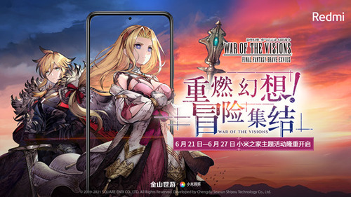 2021年6月21日,《FFBE幻影战争》×小米游戏联合营销主题活动正式拉开序幕。线上部分,《FFBE幻影战争》与小米主题、小米手环、小米手表等生态链产品共同设计了专属主题和壁纸套装,而在线下,全国小米之家、快闪店与50家主题店同时上线游戏相关活动场景,为玩家带来一系列精彩的联动和赠礼活动。