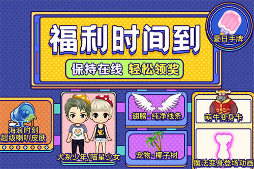 活动期间,在每天三个时段内(10:00-12:00,15:00-17:00,19:00-21:00)分别可领取3次抽奖机会,每天最多获取9次抽奖机会。根据您在活动期间参与抽奖的次数,领取“夏日手牌”、“犬系少年/喵星少女”、“海浪时刻”超级喇叭皮肤等额外奖励!