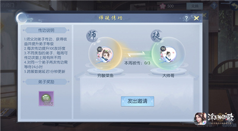 阁下在探索浮世天地时,是否会感觉自己成长不够,至此“师门传功”系统应运而生。在此系统中,阁下不管是已为人师、或是他人弟子,都可获得奖励。作为师父,名师等级为1-2时,每周传功奖励次数为3;名师等级为3-6时,每周传功奖励次数为5;名师等级为7-11级时,每周传功奖励次数为10。作为门下弟子,每周被传次数为3,超出次数将无法再接受传功,作为记名或出师弟子,每周被传次数为1,超出次数将无法再接受传功!
