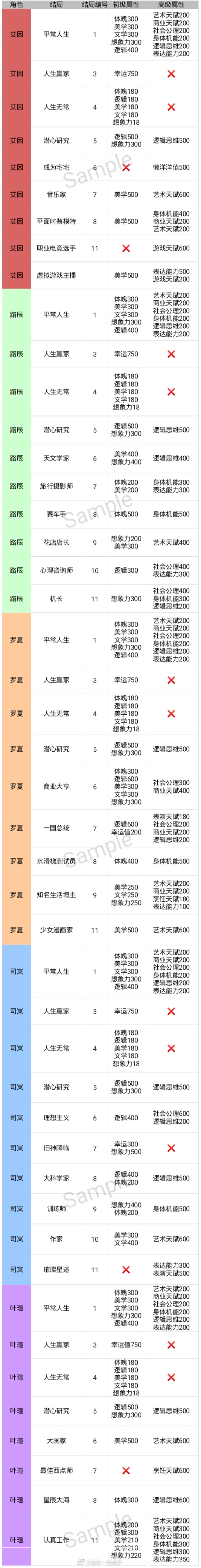 以下就是各结局的达成条件了,玩家们可以根据想要的结局来选择数值!