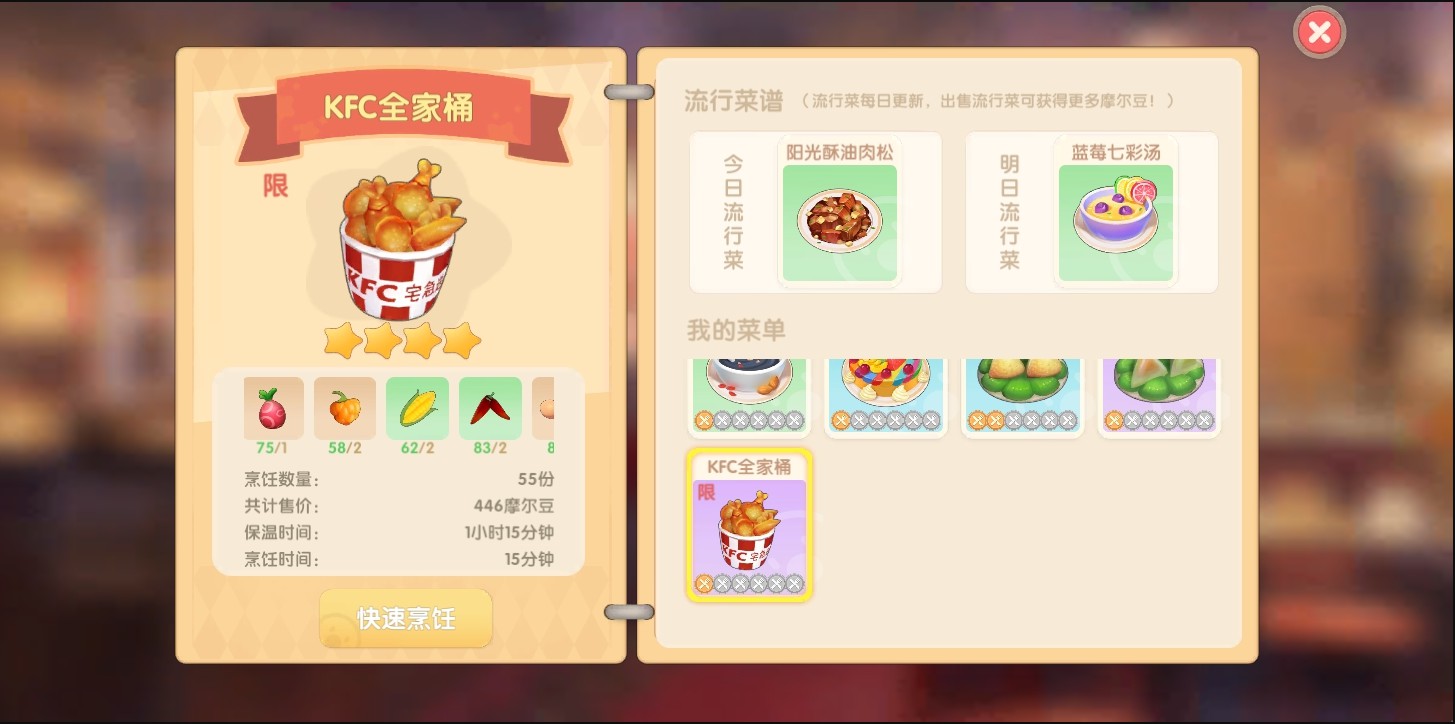 下面就为大家带来:摩尔庄园KFC全家桶怎么做?一起来看看。