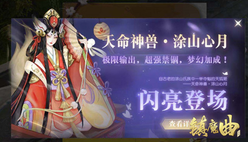 《镇魔曲》“浅夏载歌”庆典里,为天命者们准备了许多清凉有趣、奖励丰厚的活动:“朝朝盼君逢”每天都有不同好礼,只需要轻动手指就能参与;“盛日缤纷礼”中,天命者们只需要放飞五彩的气球就能收获包括神兽培养材料在内的珍稀奖励;参与“天命御华典”,更有机会把全新天命神兽涂山心月直接领回家,还能根据参与次数获得神兽元魂、赋魂丹、混沌之息等丰厚奖励!