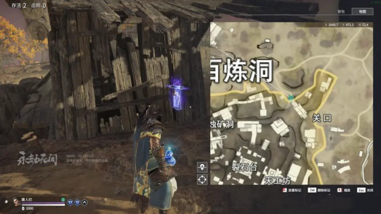 永劫无间百炼洞挑战令1 关口左上角高级战力区外的岩石与房子角落里