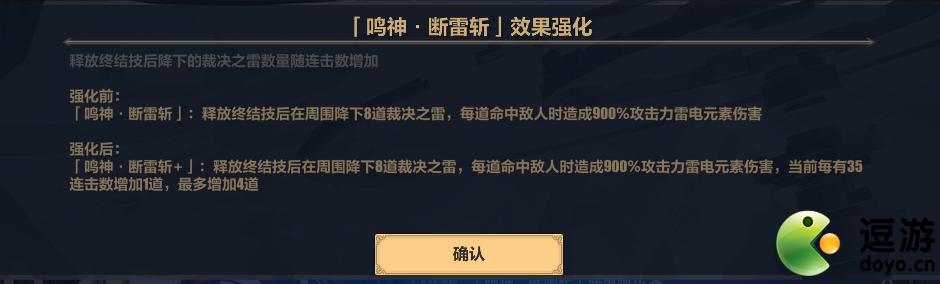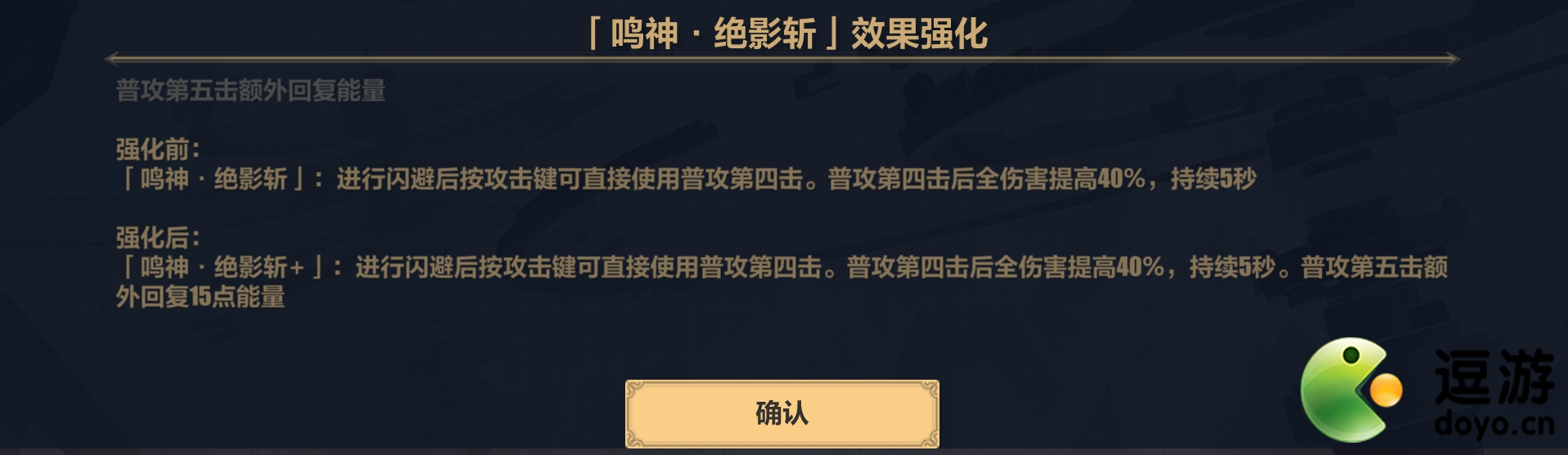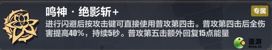 也是非常滴有用,可以在释放“绝影斩”后对敌人造成极高的伤害,应该是1800%的倍率,四舍五入约等于一个雷律大招,配合“绝影斩”可以做到几乎不放大
