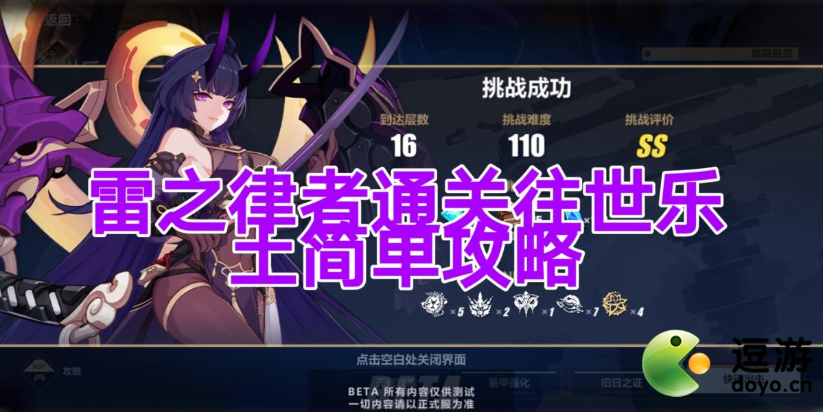 崩坏3近期上线了一个全新的活动往世乐土,这个活动有许多挑战关卡,接下来带给大家的是崩坏3v2测试服雷律过往世乐土地狱110难度简单的攻略。