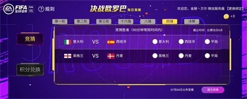 【小贴士】每场比赛竞猜截止时间为比赛当日北京时间0点,如7月8日凌晨3:00比赛,竞猜截止时间为7月8日0: 00