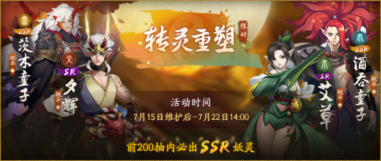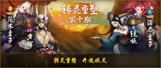 同时,“转灵重塑”限时开启,SSR妖灵茨木童子、酒吞童子受到两界联动影响,召唤概率大大提升。同期转灵重塑的SR妖灵夕辉与本月灵契皮肤妖灵艾草也将灵感增强,更易沟通。