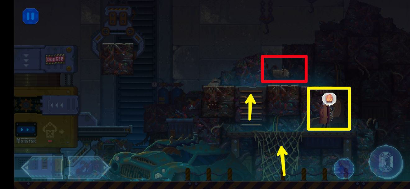 16、爬上之前捡磁铁的平台把机械手臂吸下来,回去把机械手臂还给机器人。