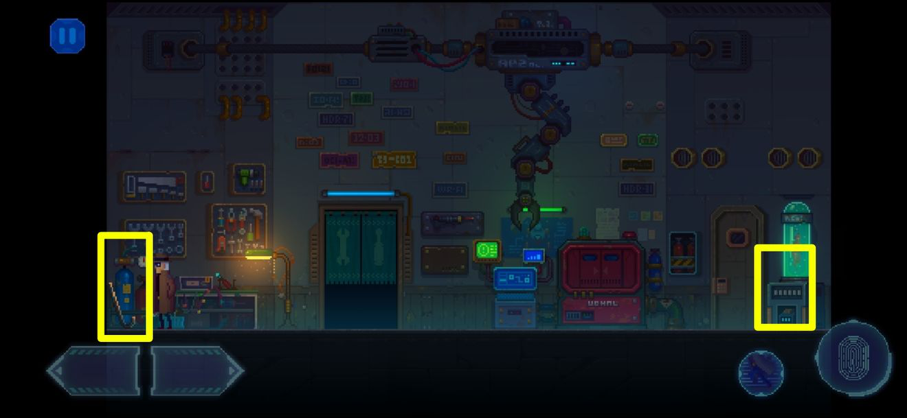 61、调查所有有感叹号的选项,弹出液体罐,查看充能台,弹出的液体罐和地面上的痕迹获得线索。