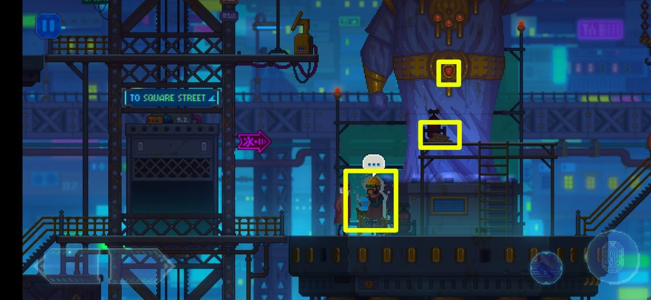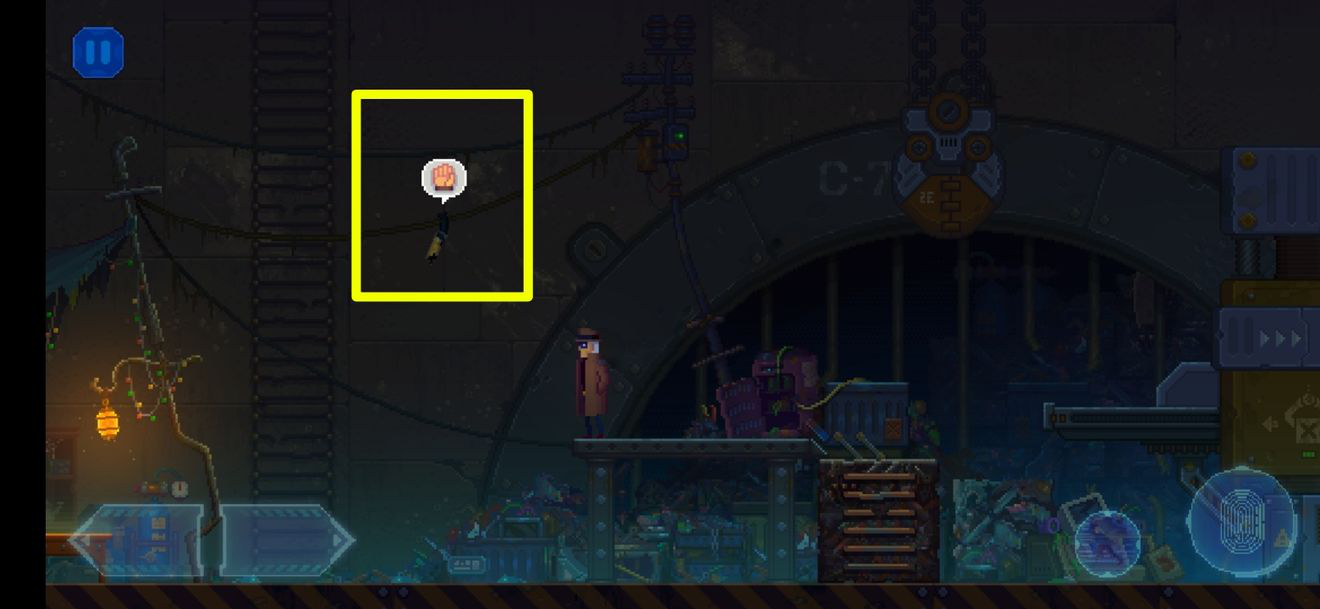 50、把传送带调成图示后,按下开始键 吓走坏人,就可以上去了。