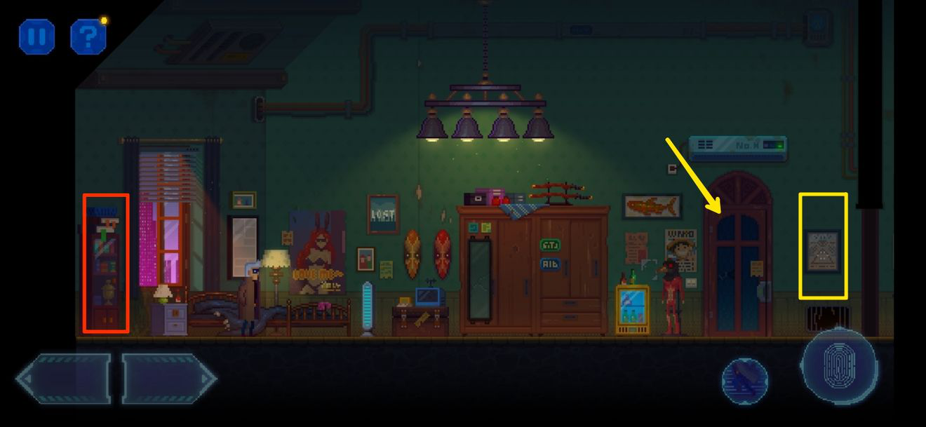 15、侦探在二楼卧室醒来,任务提示我们去三楼工作间检查波波查。箭头指的地方是洗手间暂时进不去,洗手间右边挂着一幅荷鲁斯之眼挂画,调查一下。