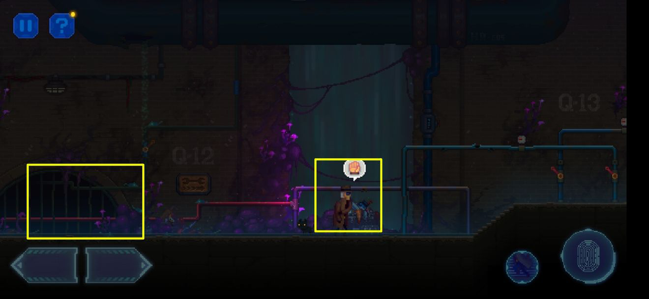 2、新手教程结束后在下水道醒来,往右走,从老鼠那里抢回帽子。