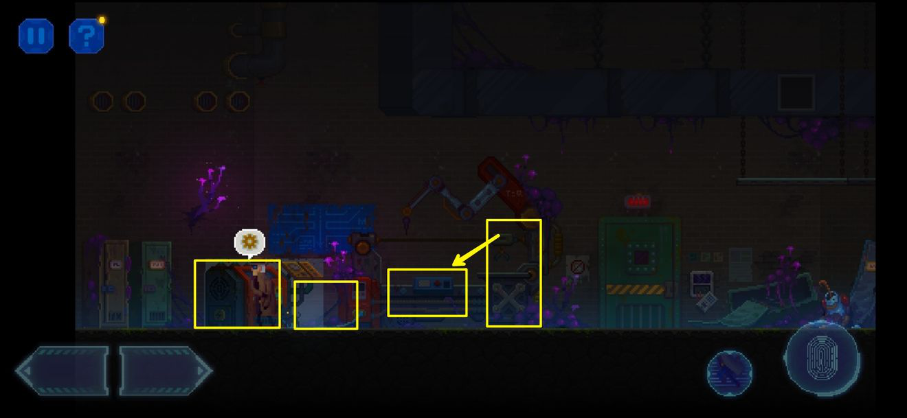 13、修复机器,连接电缆,然后把两个电子元件放在右边的台子上,操控侦探躺上去。