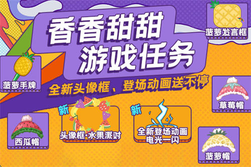 活动期间,完成游戏任务,无论获胜还是失败,都能获得“金钥匙”,领取全新“水果派对”头像框、全新“登场动画·电光一闪”等活动特别嘉奖!