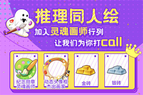 参赛规则:以《推理学院》故事背景、角色为灵感,创作您的专属作品!投稿数量不限,内容可以是:插画、原画、简笔画、漫画等等,作品不要求技术高超,只要您用心绘制,即可脱颖而出!创作结束后,《推理学院》会公布展览方式,届时即可将小伙伴们的画作面向全推理之都的玩家进行展示,并由玩家们进行投票。