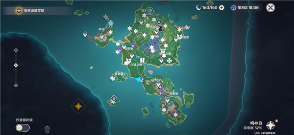 30:稻妻城与镇守之森中间海域的高空中(可以开船快一些)靠近也不会显示(因为太高) 需要通过「元素视野」找3个小精灵激活「雷樱枝条」触发「雷极」才可获得;